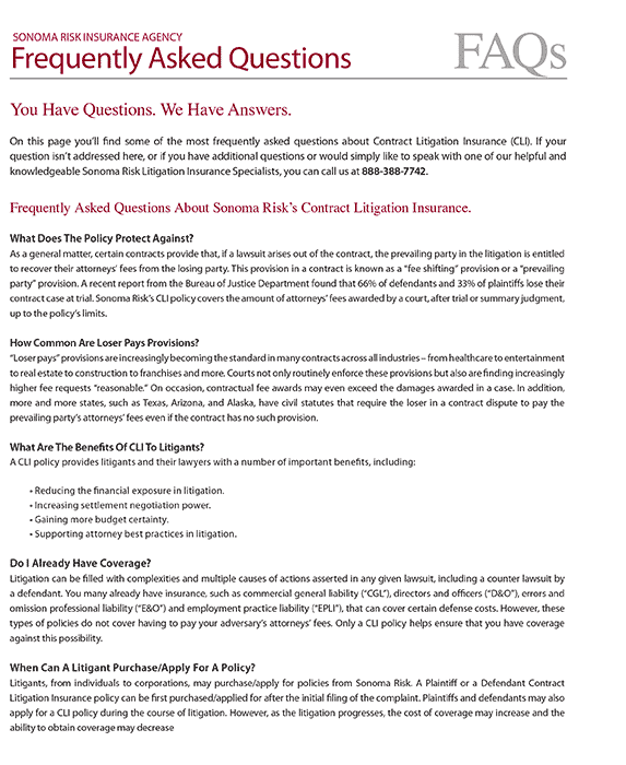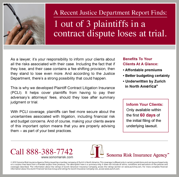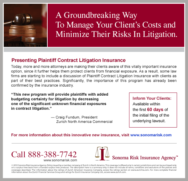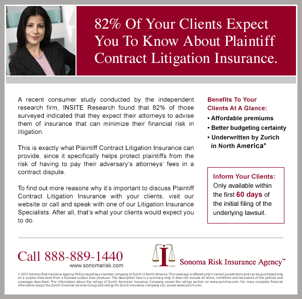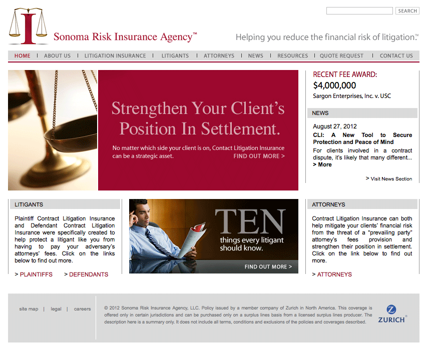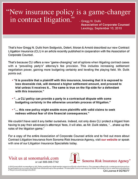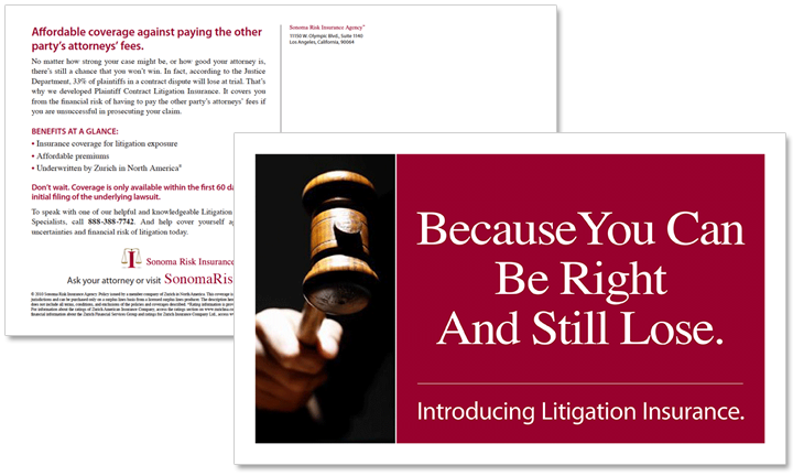 Positioning:Sonoma Risk is the leading provider of first-of-its-kind, innovative and affordable litigation insurance to individuals, businesses and corporations.